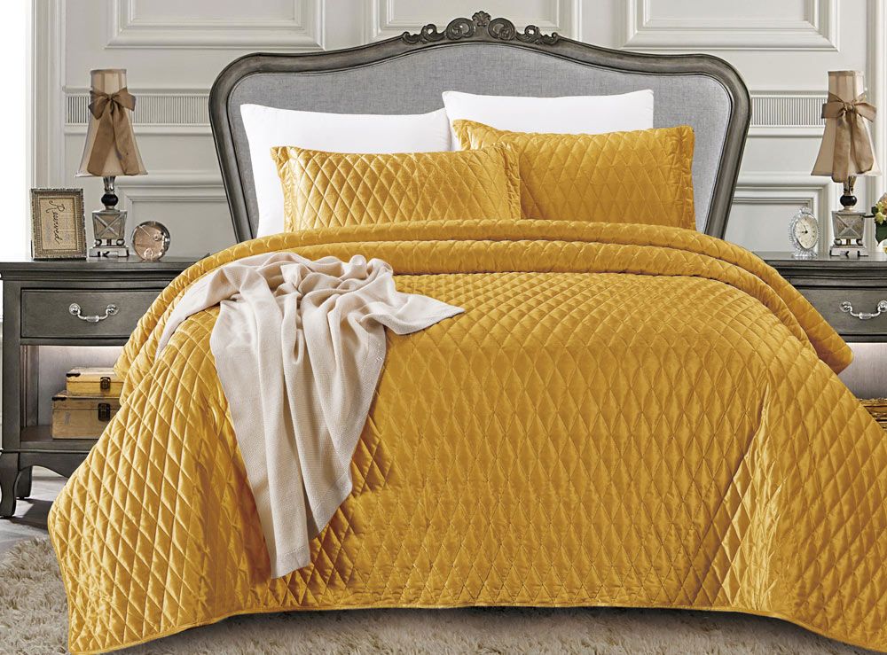 Покрывало Tango "ARABESQUE", велюр. Однотонное покрывало со стежкой в форме ромбов среднего размера с отделкой тонким кантом, соответствующим по тону основной расцветке. Поверхность обладает легким, благородным блеском, изделие прекрасно смотрится в интерьере. Материал не вызывает аллергических реакций, отличается износостойкостью и хорошо выдерживает большое количество стирок. Это покрывало украсит интерьер вашего дома, а также подойдет для подарка. Состав - полиэстер 100%. Размер покрывала 240х260 - 1 шт, наволочка 50х70 - 2 шт. Упаковка - ПВХ-сумка, на молнии, с ручками.