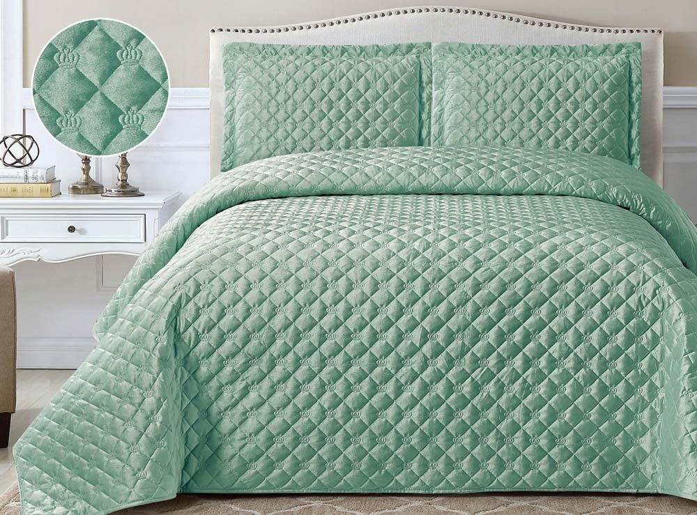 Покрывало Tango "FRENCH CROWN", велюр. Однотонное покрывало со стежкой в форме корон и ромбов среднего размера с отделкой тонким кантом, соответствующим по тону основной расцветке. Поверхность обладает легким, благородным блеском, изделие прекрасно смотрится в интерьере. Материал не вызывает аллергических реакций, отличается износостойкостью и хорошо выдерживает большое количество стирок. Это покрывало украсит интерьер вашего дома, а также подойдет для подарка. Состав - полиэстер 100%. Размер покрывала 240х260 - 1 шт, наволочка 50х70 - 2 шт. Упаковка - ПВХ-сумка, на молнии, с ручками.