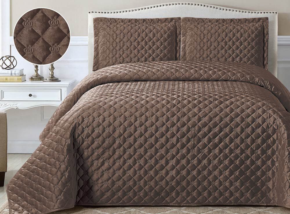 Покрывало Tango "FRENCH CROWN", велюр. Однотонное покрывало со стежкой в форме корон и ромбов среднего размера с отделкой тонким кантом, соответствующим по тону основной расцветке. Поверхность обладает легким, благородным блеском, изделие прекрасно смотрится в интерьере. Материал не вызывает аллергических реакций, отличается износостойкостью и хорошо выдерживает большое количество стирок. Это покрывало украсит интерьер вашего дома, а также подойдет для подарка. Состав - полиэстер 100%. Размер покрывала 240х260 - 1 шт, наволочка 50х70 - 2 шт. Упаковка - ПВХ-сумка, на молнии, с ручками.