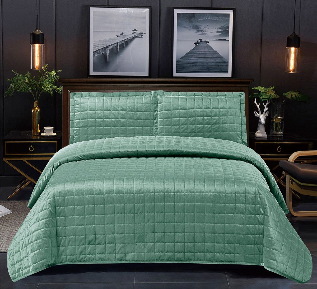 Покрывало Tango "SAUVAGE", велюр. Однотонное покрывало со стежкой в форме квадратов среднего размера с отделкой тонким кантом по периметру. Поверхность обладает легким, благородным блеском, изделие прекрасно смотрится в интерьере. Материал не вызывает аллергических реакций, отлично переносит большое количество стирок. Это покрывало так же хорошо подходит для подарка. Состав - полиэстер 100%. Размер покрывала 240х260 - 1 шт, наволочка 50х70 - 2 шт.