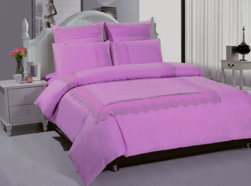 Комплект постельного белья TANGO "GIPUR", евро. Материал - однотонный сатин (100% хлопок). Поверхность ткани обладает легким блеском, что делает ее похожей на шелк, материал плотный и мягкий, прекрасно пропускает воздух, спать на таком постельном белье очень комфортно. Особенность изделий данной коллекции - отделка кружевом, придающая постельному белью изысканный, роскошный вид. Мы рекомендуем стирать данный комплект постельного белья при температуре не выше 30 градусов на режиме «ручная стирка» или «бережная стирка», с минимальными параметрами отжима, без использования отбеливателей и сильнодействующих стиральных порошков. Состав комплекта: пододеяльник 200х220 - 1 шт., простыня 240х245 - 1 шт., наволочка 70х70 - 2 шт., наволочка 50х70 - 2 шт.