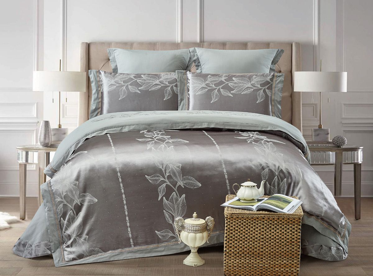 Постельное белье Tango из жаккарда, семейное. Жаккард – особый вид элитной ткани, который характеризуется рельефной структурой поверхности благодаря сложному переплетению нитей, создающих эффектный узор. Процесс создания ткани очень трудоемкий и требует довольно много времени, оборудование для изготовления жаккарда считается одним из самых сложных и совершенных механизмов. Комплект постельного белья из жаккарда отличается прочностью и изящным великолепием сложного рисунка, сплетенного из нитей. Мы рекомендуем стирать данный комплект постельного белья при температуре не выше 30 градусов на режиме «ручная стирка» или «бережная стирка», с минимальными параметрами отжима, без использования отбеливателей и сильнодействующих стиральных порошков. Гладить материал рекомендуется с изнаночной стороны, при сушке избегать попадания прямых солнечных лучей. Состав материала: хлопок-65%, вискоза-35%. Размеры постельного белья: пододеяльник 160х210 - 2 шт., простыня 230х250 - 1 шт., наволочка 50х70 - 2 шт., наволочка 70х70 - 2 шт.