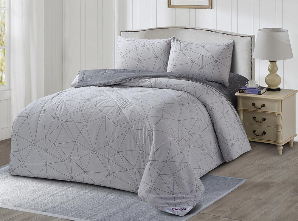 Комплект постельного белья Tango упакован в сумку ПВХ (на молнии, с ручками). Состав комплекта: одеяло (пододеяльник несъемный) 150х200 - 1 шт., простыня 180х230 - 1 шт., наволочка (клапан) 50х70- 1 шт., наволочка (клапан) 70х70- 1 шт.
