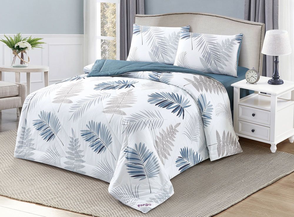 Комплект постельного белья Tango упакован в сумку ПВХ (на молнии, с ручками). Состав комплекта: одеяло (пододеяльник несъемный) 150х200 - 2 шт., простыня 230х250 - 1 шт., наволочка (клапан) 50х70- 2 шт.